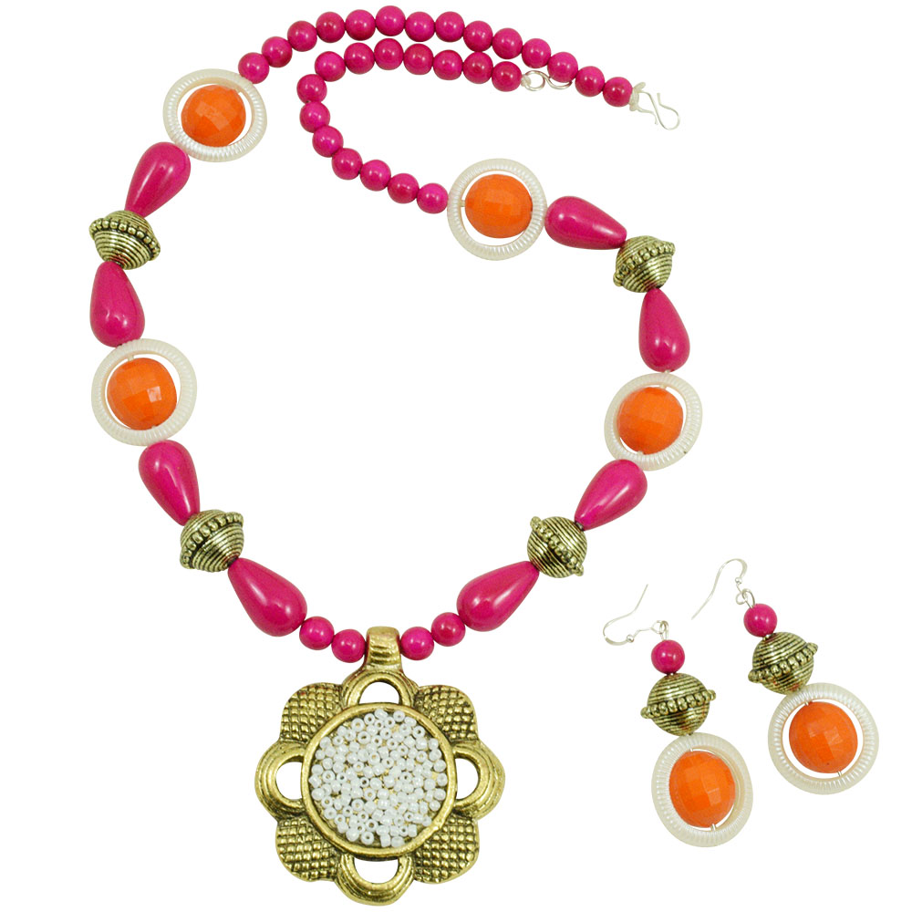 Now, wear this modish necklace set that's when you need some pretty soothing colors to beat the scorching sun. We bring this cool necklace set just for you from our exotic collection. Who said the fashion for NEONs is out? It is very much in and when you adorn this neck piece with your suit, jeans or a saree, we are sure that you will steal the show!
