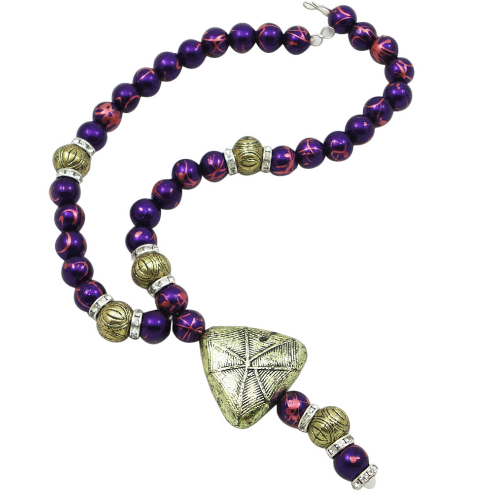 | Material | Silver Colored Diamonds Rings, Purple Beads, Antique Pendant. |