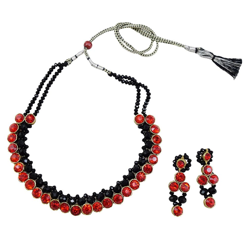 Black Crystal Beads Red Kundan Choker Necklace for Girls & Women
