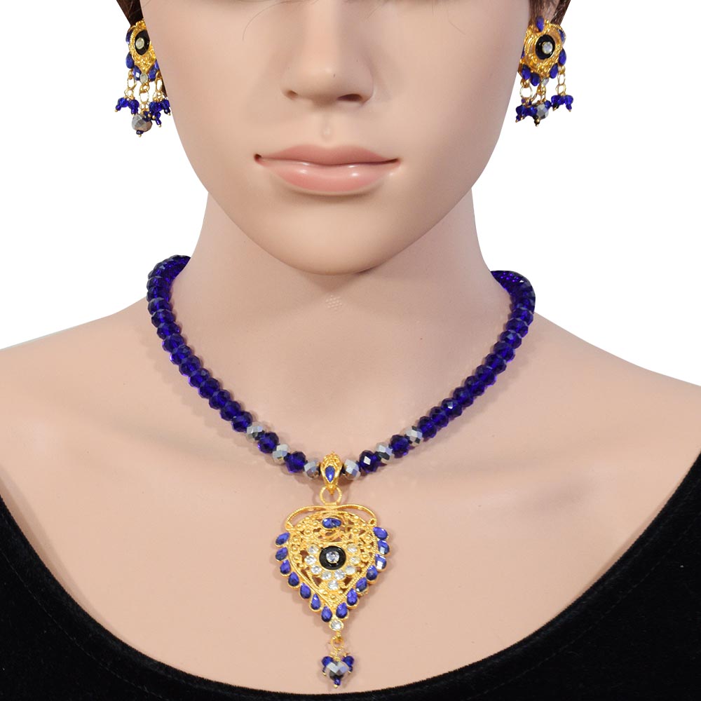 Blue Crystal Beads Golden Pendant Necklace