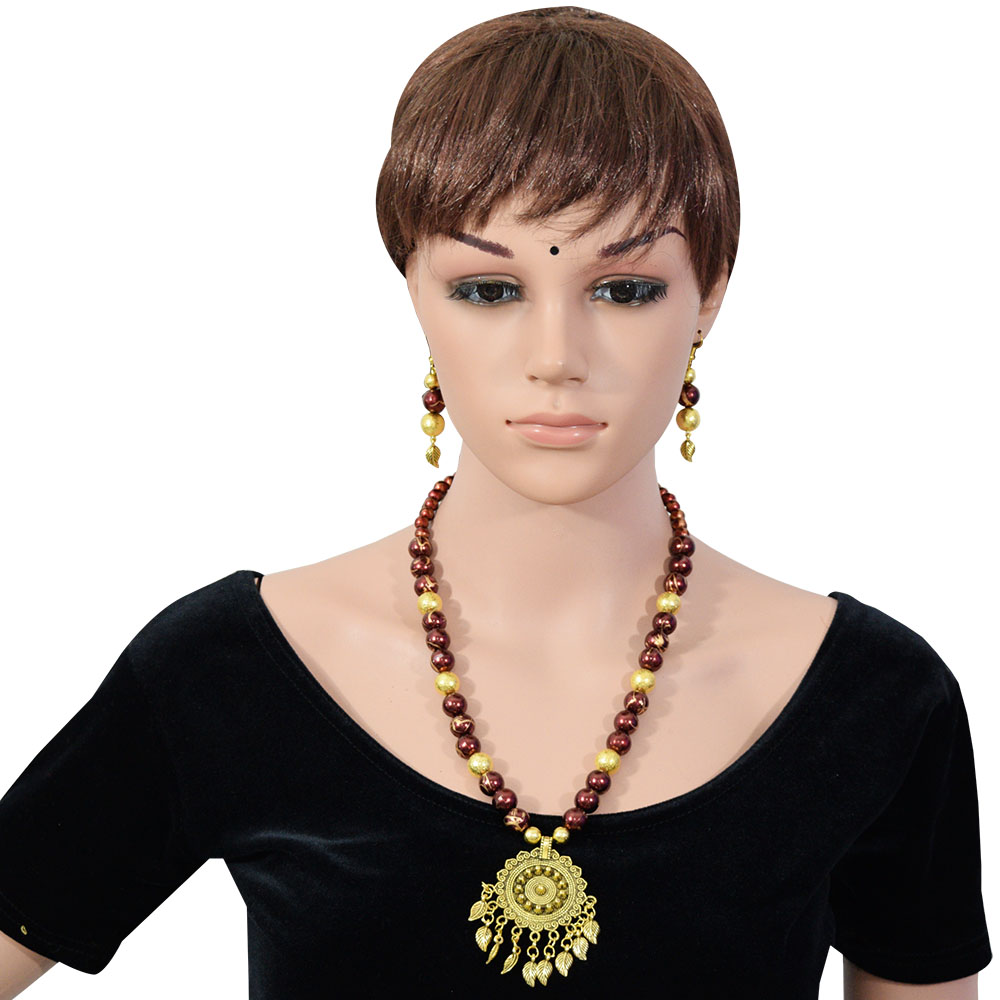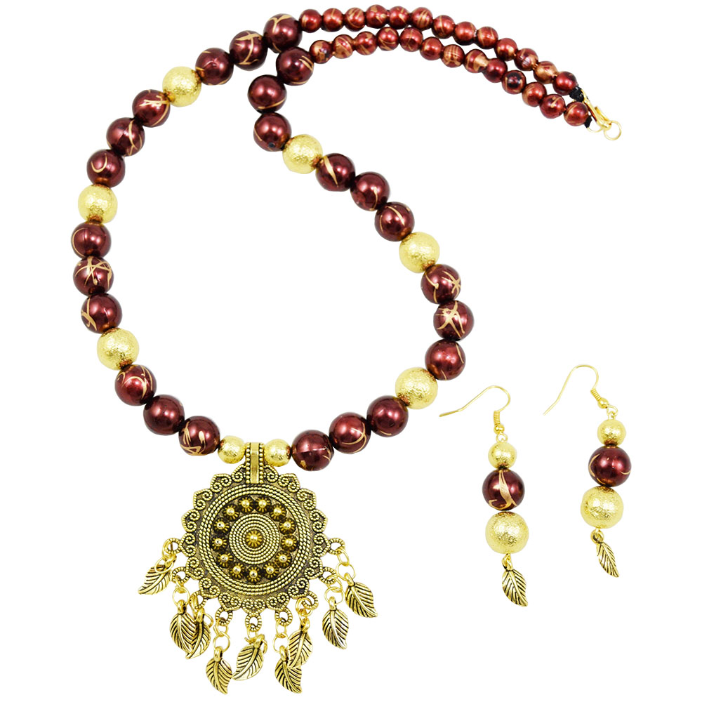 Designer Beads Antique Pendant Necklace & Earrings