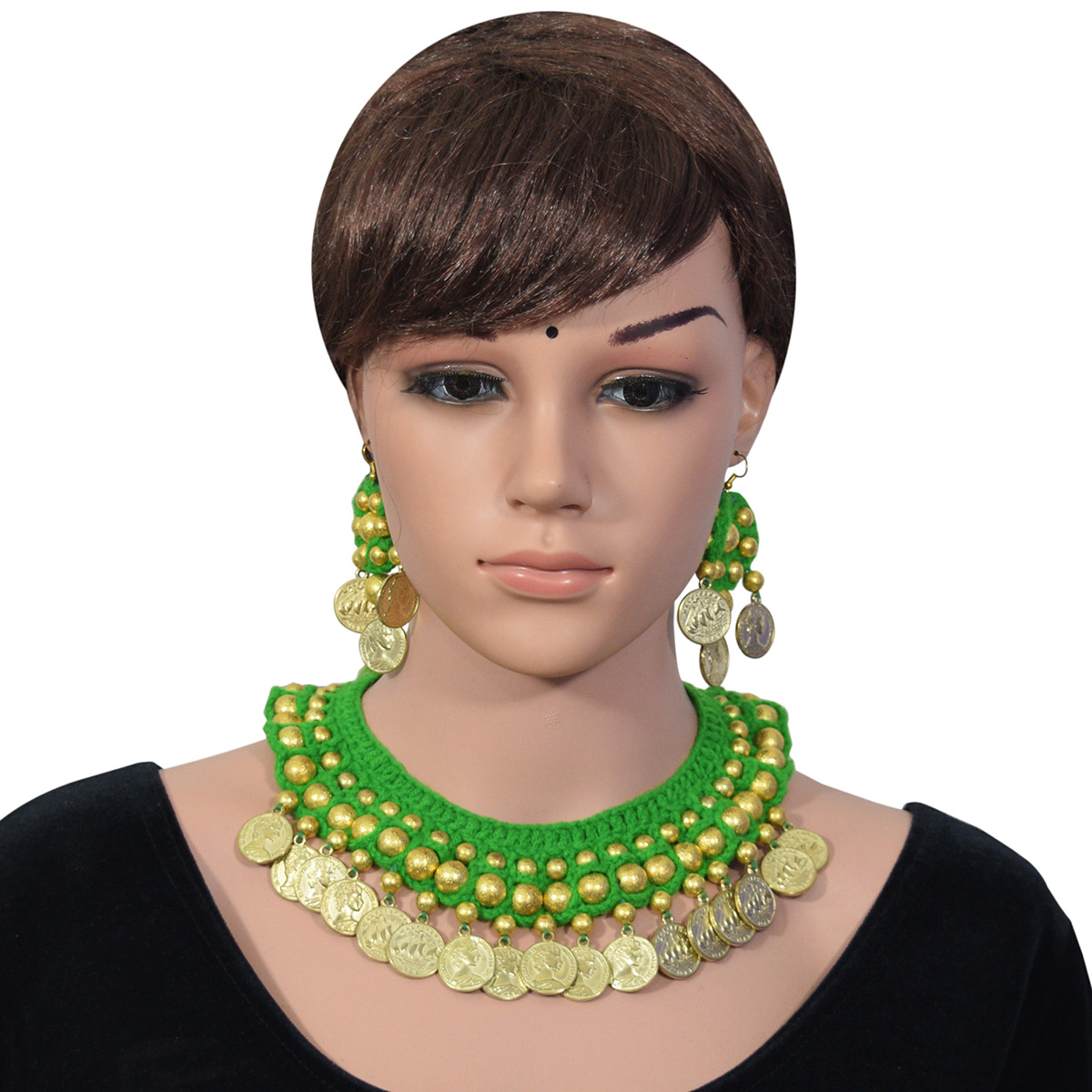 The green color is universally associated with nature and it is taken as the term ‘taking action. The ethnic textile necklace looks very gentle, bright, beautiful, and easy. It will decorate and will recover any ethnic wear of Navratri. It is possible to combine even with the classy western outfit of Navratri. This necklace consists of different designer items. And a pair of matching earrings just go perfect with the necklace. So, do not wait and steal this necklace now!
