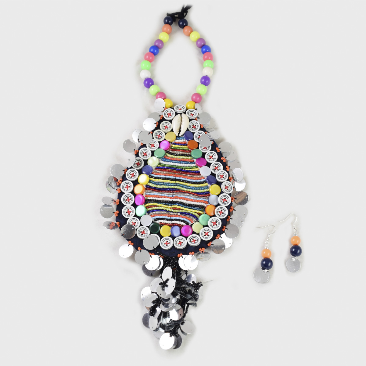 Navratri will be there soon and you must be looking for all the jewelry to adorn your outfit. Fashionvalley is your one-stop-shop for Navratri jewelry. Like this necklace and earrings set which is completely handmade. This multicolored necklace length goes to the lower neck and can go with any color of your Navratri attire. This will look stunning with your Garba costume. So order online now from Fashionvalley!