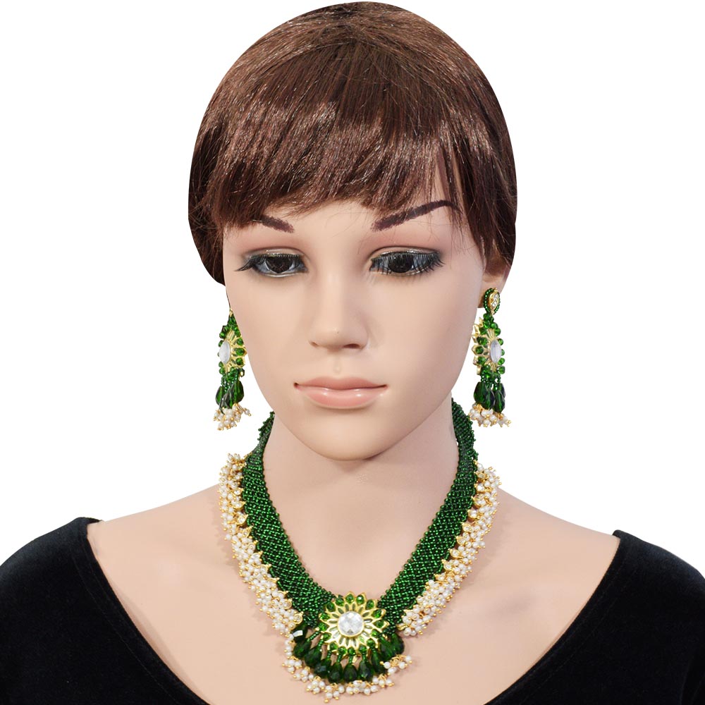 For all fashion conscious ladies out there, add this hand woven emerald stone flower-shaped beaded necklace to your silhouette. The gold-plated flower shaped pendant in the centre, add a rich look as you wear it with any yellow, golden or light green coloured traditional outfit. Irrespective of the occasion, gift your lady love this all-time fashion jewellery and make a statement.