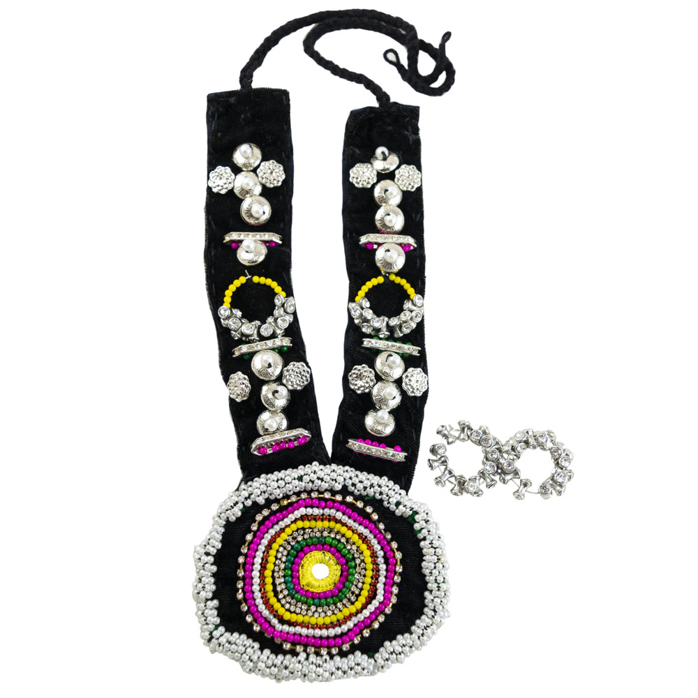 Necklaces add elegance to your appearance. Want to be dressed in a unique way this festive season? Grab this multi color beads designer necklace today. Made up of colorful beads and designer items, this amazing garba necklace will enhance your Navratri look. The colorful beads in the necklace make it look more attractive. This necklace for Navratri contains 1 Necklace and 2 Earrings, and available at a budget-friendly price. This Jute necklace for Chaniya choli is available in black, pink, white, yellow and red colors. Buy this beautiful necklace made with love and we bet you will look the best.