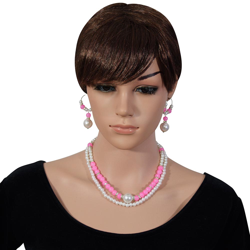 Pink & White Beads Designer Necklace Set