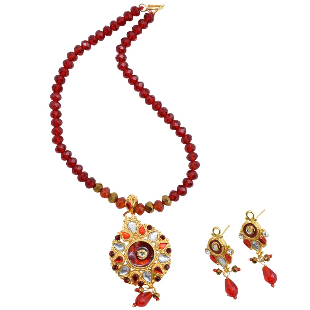 Red Crystal Beads Golden Pendant Necklace