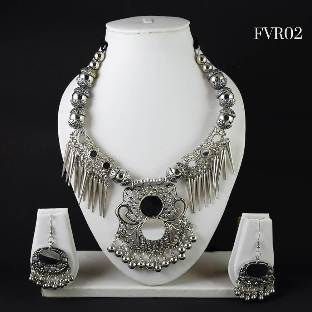 Silver Oxidised Necklace Set FVR2