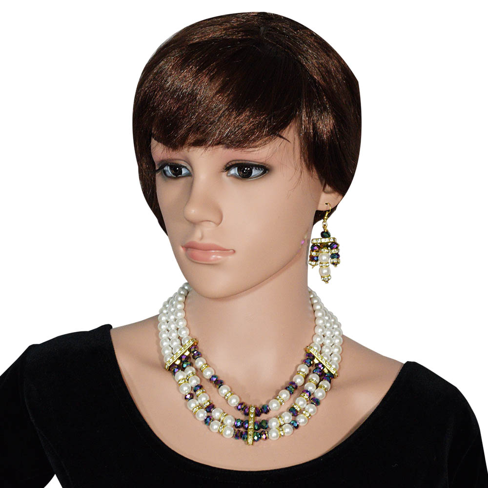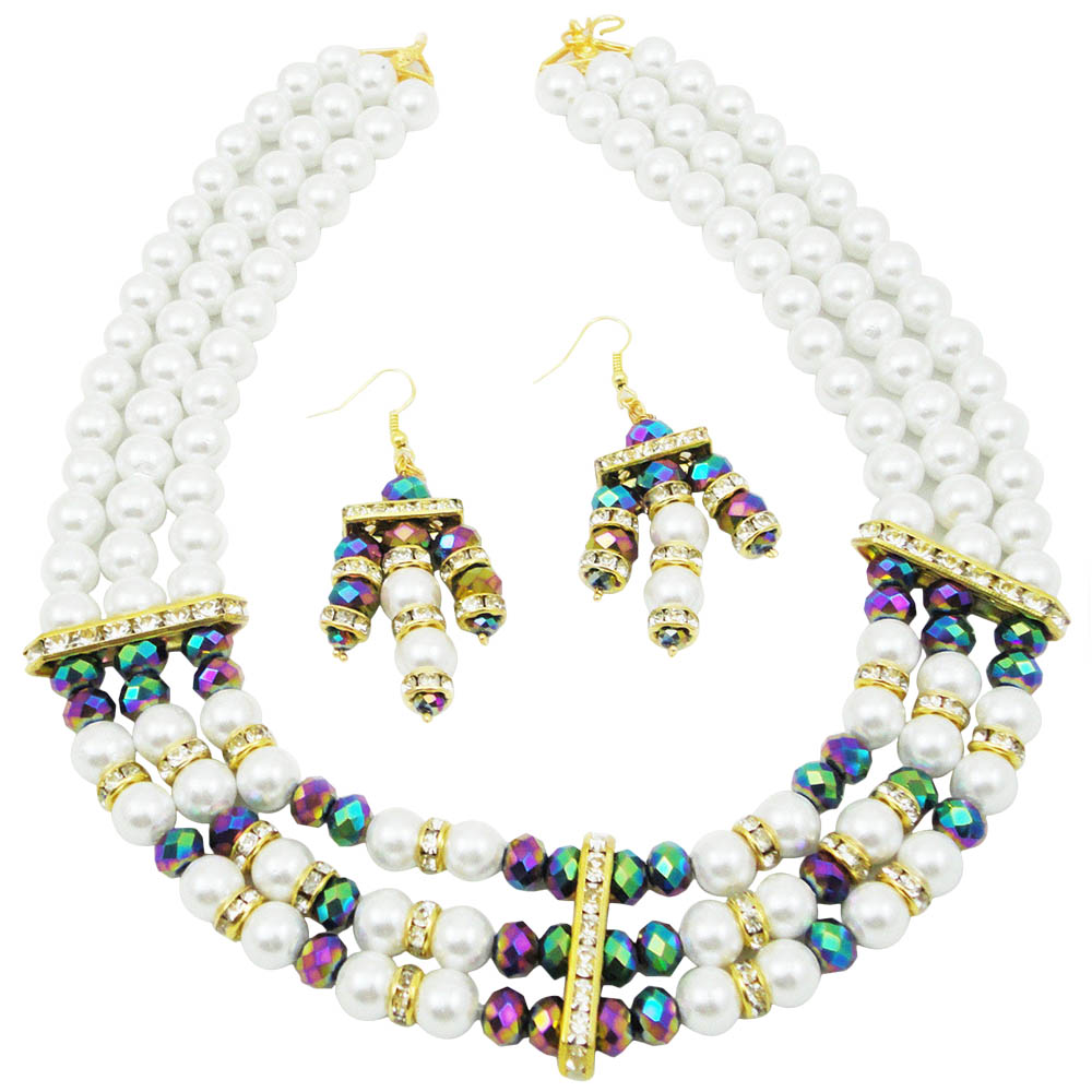 White Pearl Necklace with Multicolored Crystal Beads