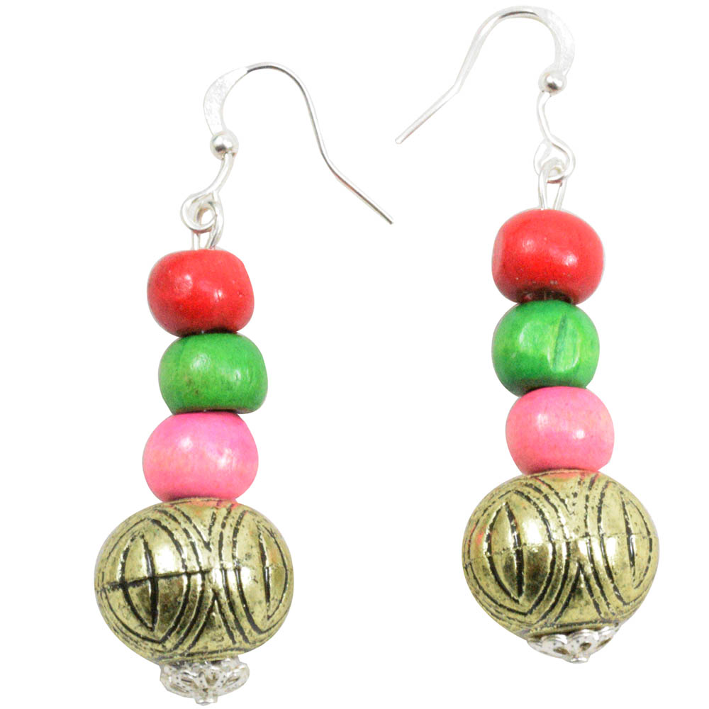 This is a beautiful metal cum bead necklace. It reflects versatility and charm. You can wear it on any occasion. It can also be used to accentuate the beauty of your simple attire. It has been made using beads of different colors. Black beads have been used to add contrast to the set. Metal has also been added to make the necklace look stylish and versatile. The metal is inscribed with design, making the piece more attractive. The pendant is triangle in shape and made of metal with silver color. The earrings are made using three beads. They have been kept simple to balance the richness exuded by the necklace. If you are going for western wear, just the earrings can go well with it.