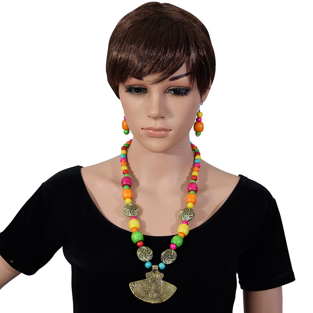Wooden Beads Antique Pendant Designer Necklace Set